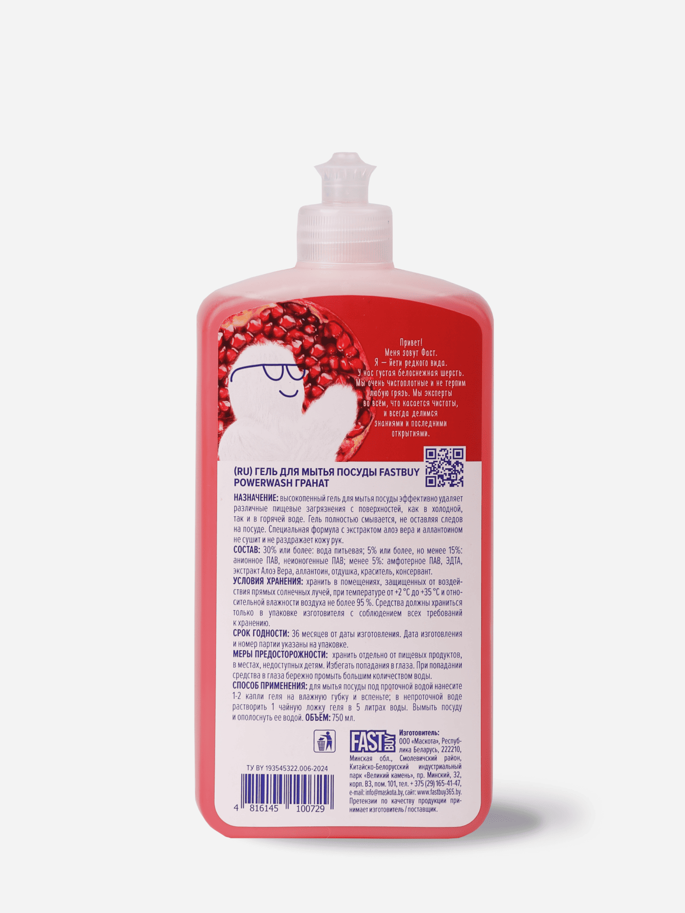 Гель для мытья посуды FASTBUY Power Wash Гранат, 0,75л