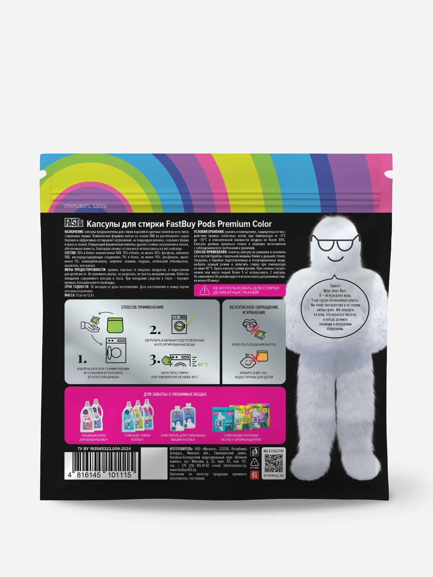 Капсулы для стирки FASTBUY Pods Premium Color, 12шт